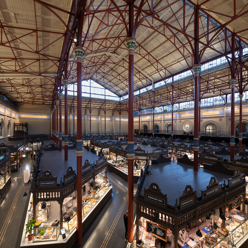 Östermalms torvehal er efter flere års renovering og udbygning i gammel stil blevet udstyret med topmoderne belysningsteknologi. Wennerström Ljuskontroll har leveret DALI-styresystemer og LED-ballaster fra Tridonic samt LEDtape fra Welight.