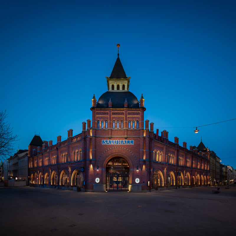 Planning began as early as 2014 and in March 2020, the new market hall was inaugurated. The project is well worked out with, among other things, renovation and updating of old luminaires to the new LED technology. A fantastic environment with nice light installations both indoors and outdoors.